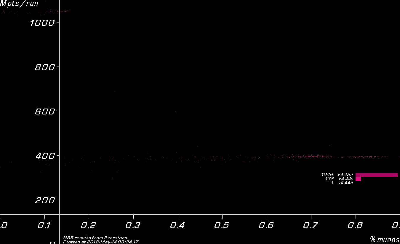 Results coloured by Muon1 version.