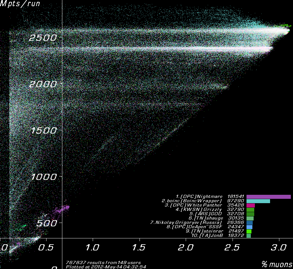 Results coloured by user.