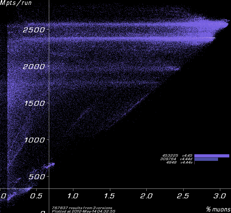 Results coloured by Muon1 version.