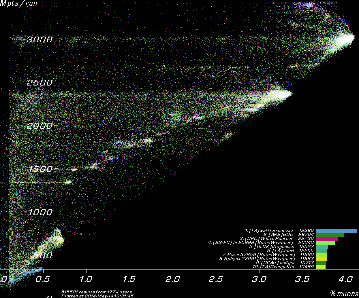 Results coloured by user.