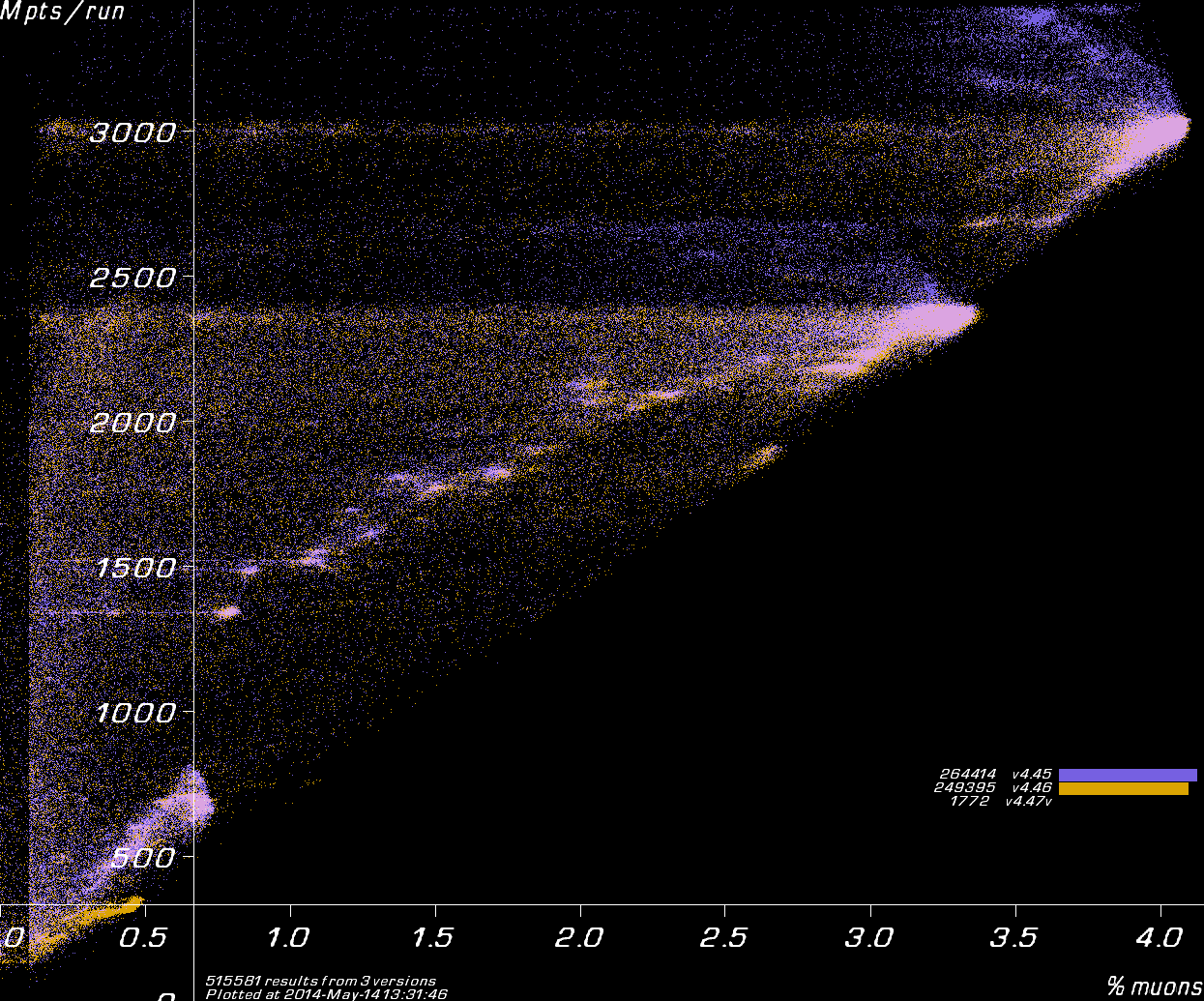 Results coloured by Muon1 version.