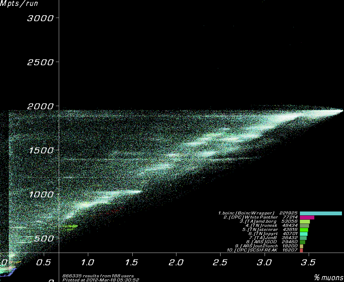 Results coloured by user.