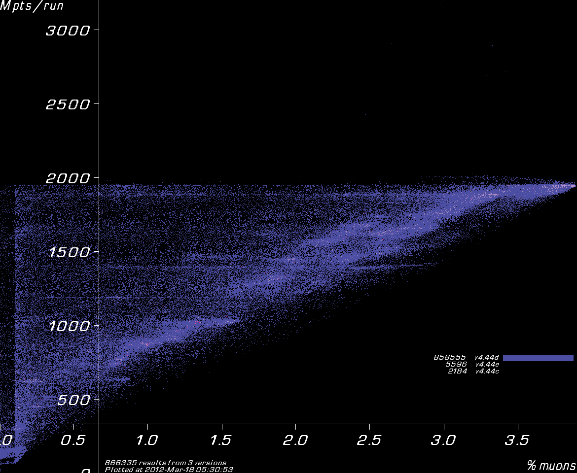 Results coloured by Muon1 version.