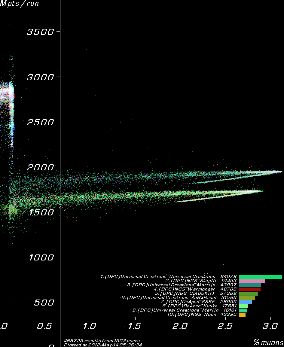 Results coloured by user.