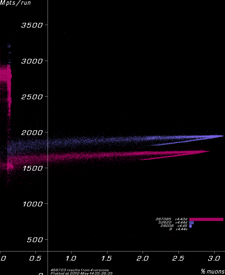Results coloured by Muon1 version.