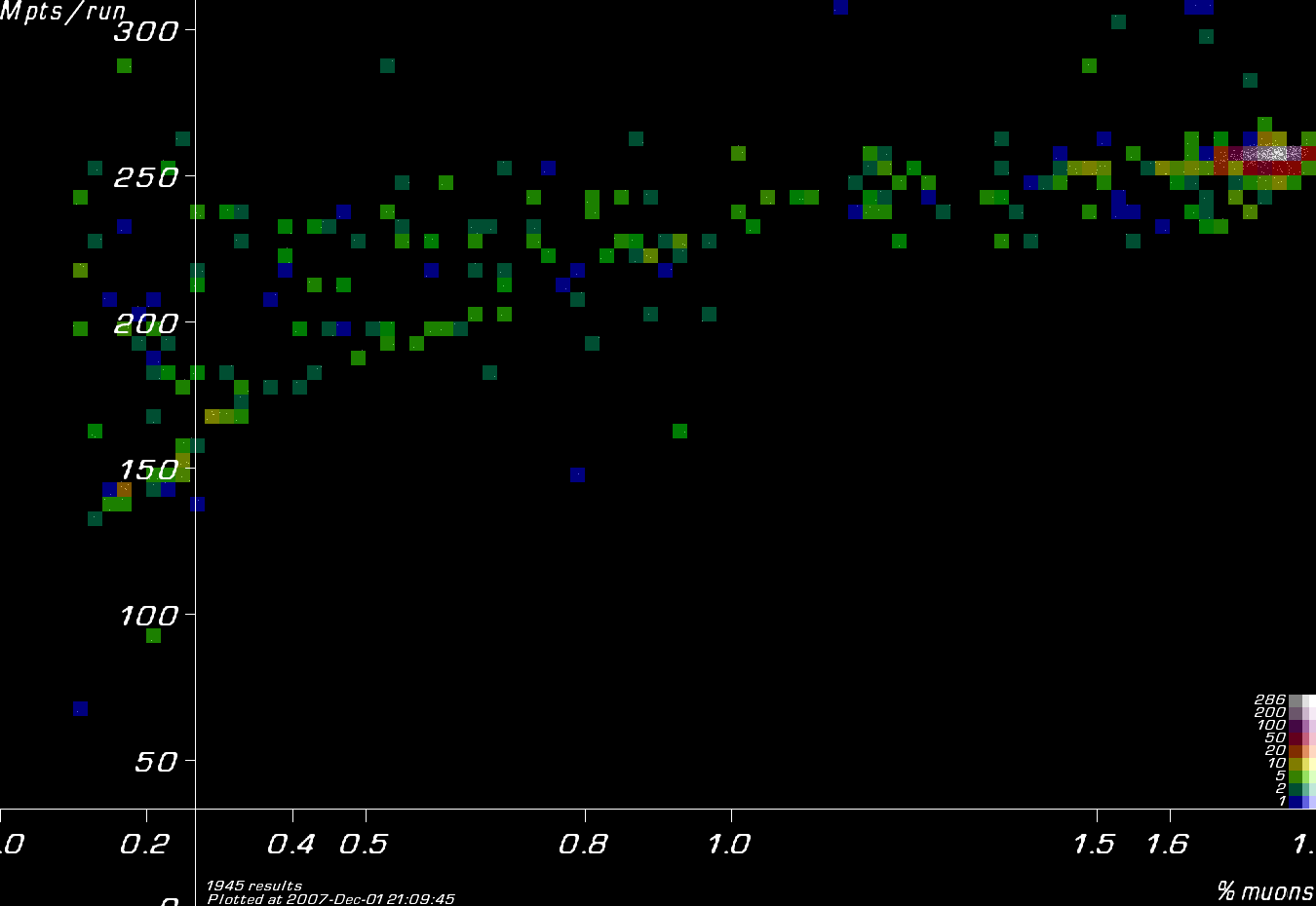 Results coloured by Muon1 version.