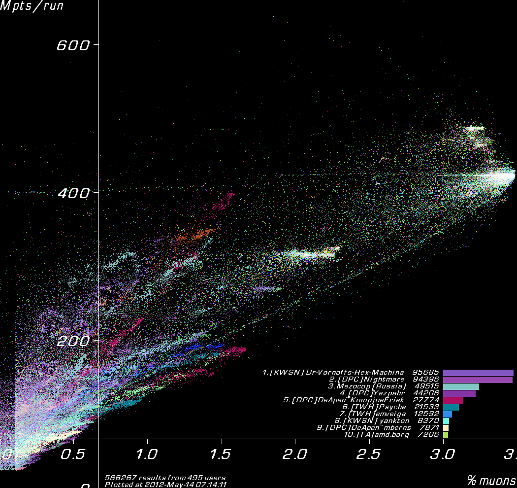 Results coloured by user.