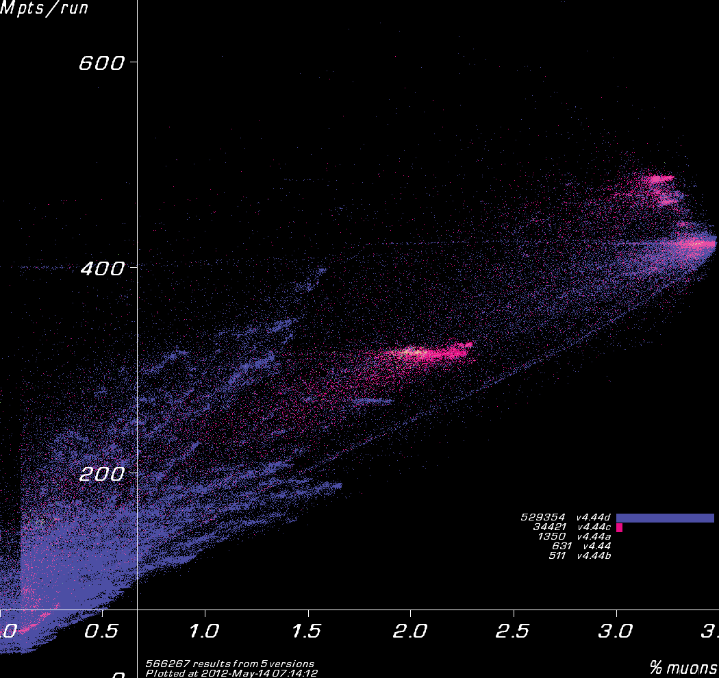 Results coloured by Muon1 version.