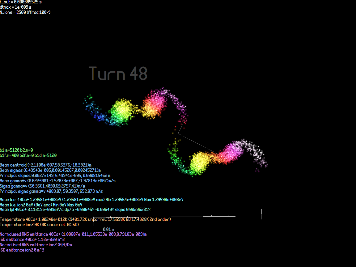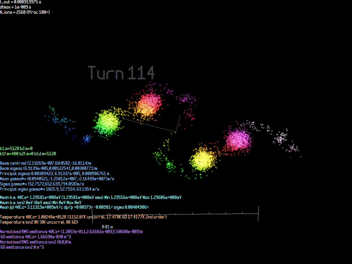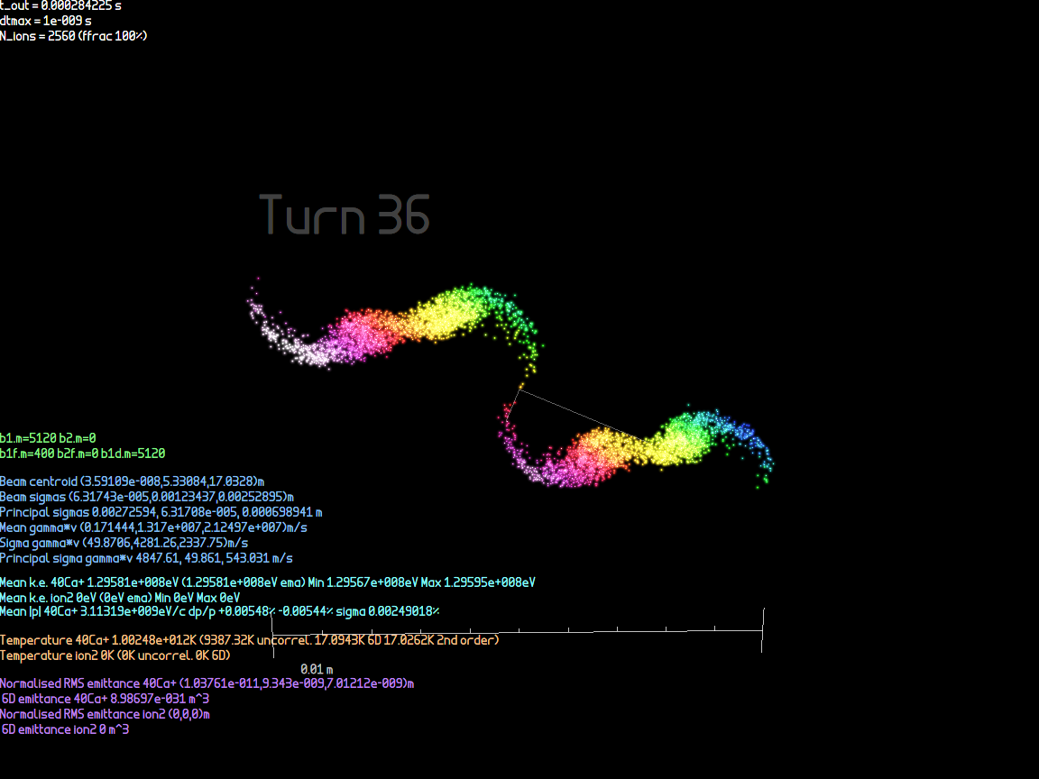 2025-Dec-08 18:11:38 Simulation of a long bunch breaking up into solitons in the BNL booster synchrotron. #accelerators #physics This required setting focussing magnets to much weaker than normal and starting with a dense, high space-charge bunch. Doing this experiment in practice could be a precursor to crystalline beams, as when Coulomb crystals are put in place of the solitons here, they heat up by less than 1 Kelvin/second. |