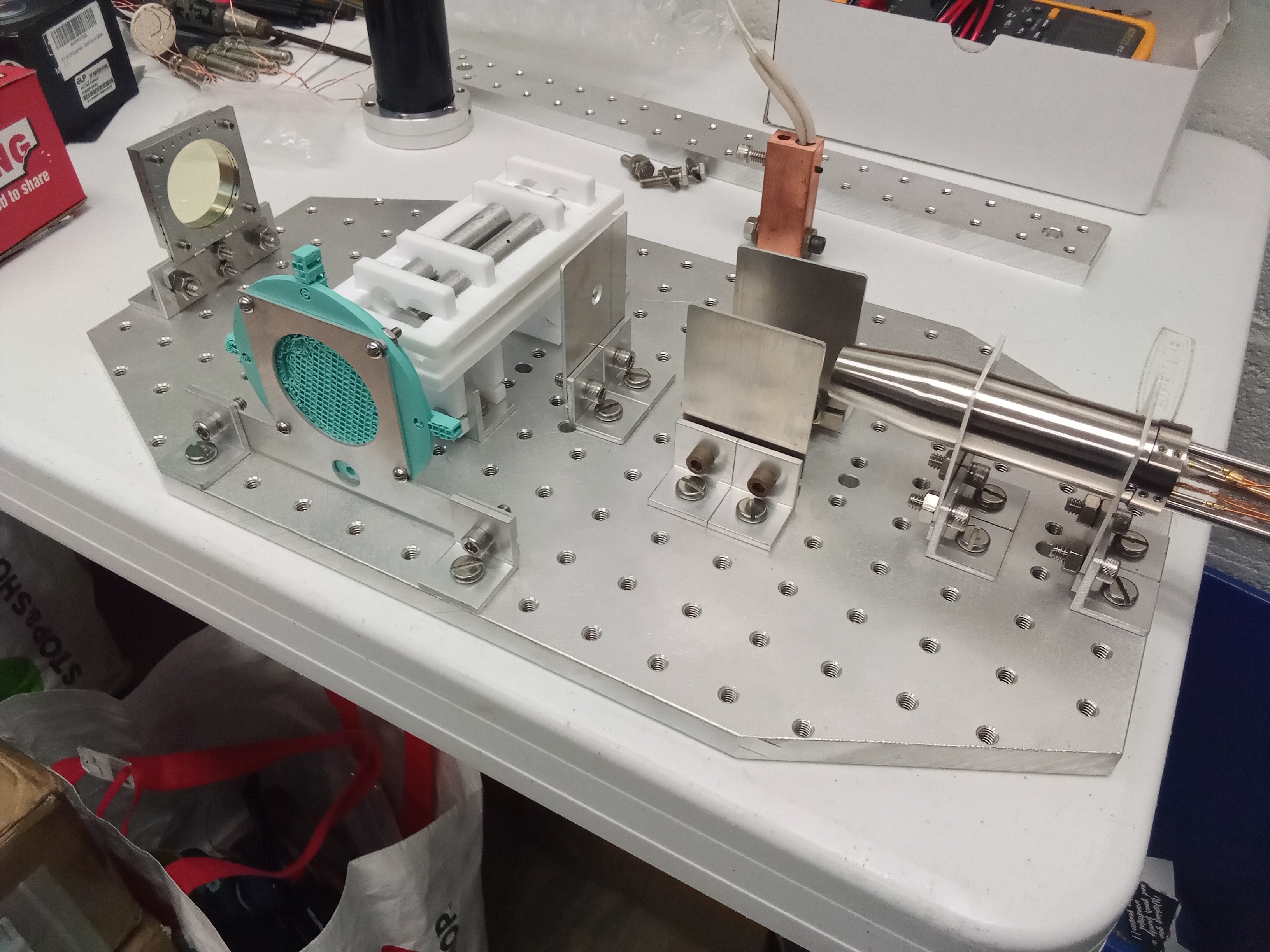 2025-Dec-09 21:18:59 Doing a first assembly and fit test of ion trap's next configuration. This time, the electron beam is going through the trap and can be switched on and off rapidly via deflection electrodes and a small hole. The blue plastic is modelling the Micro-Channel Plate that is still in storage vacuum. #physics #accelerators |